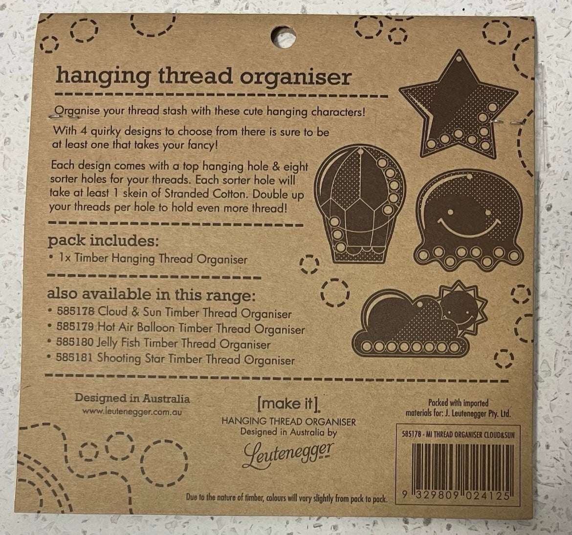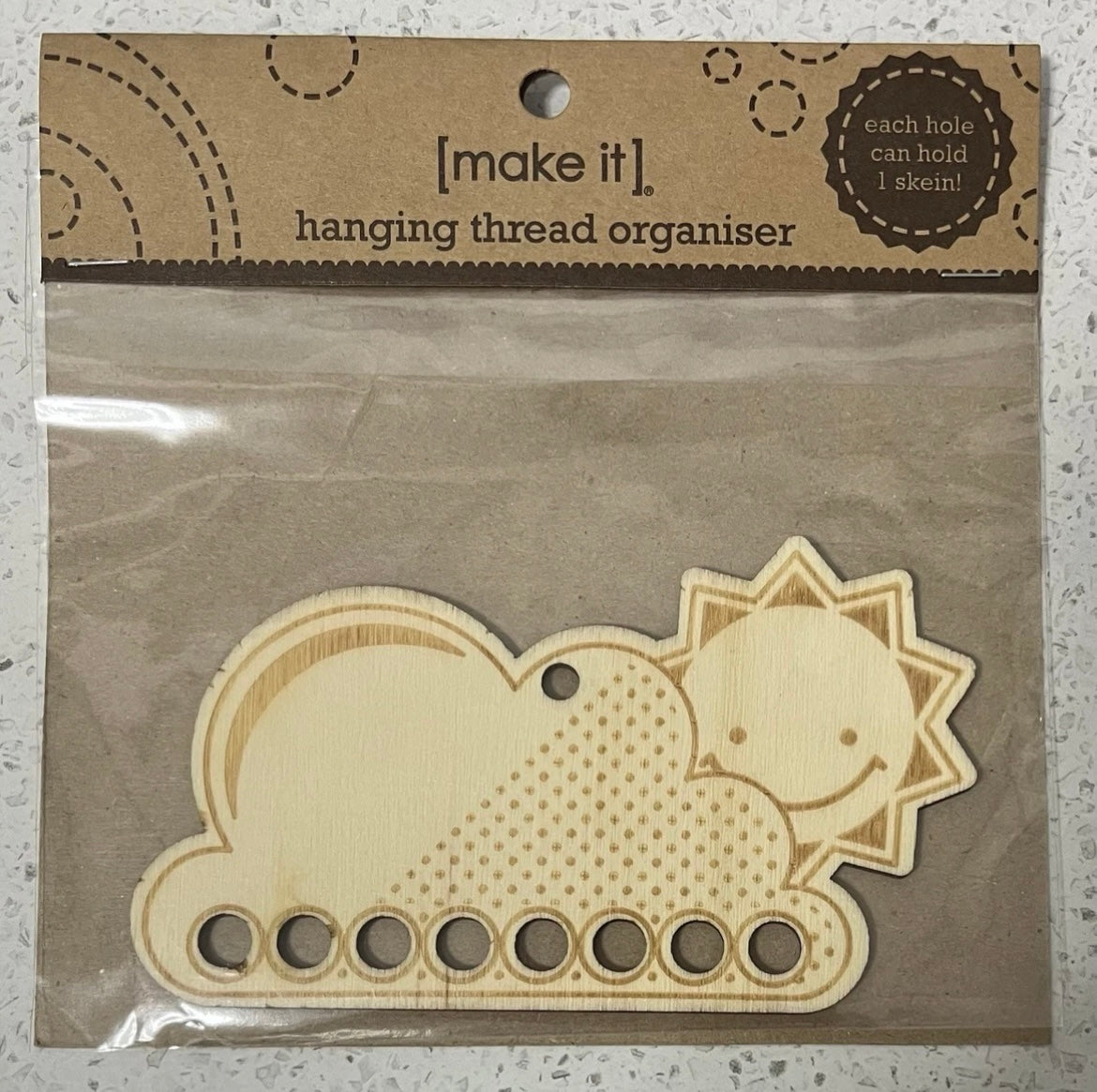 Each design comes with a top hanging hole & eight sorter holes for your threads. Each sorter hole will take at least 1 skein of Stranded Cotton. Double up your threads per hole to hole even more thread.